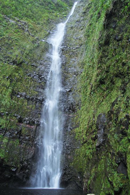 De nombreux filets d’eau dégringolent sur la roche à travers une végétation dense, avant de terminer leur course dans de jolies piscines naturelles. Les pics effilés qui les dominent ajoutent à la sauvagerie du paysage.