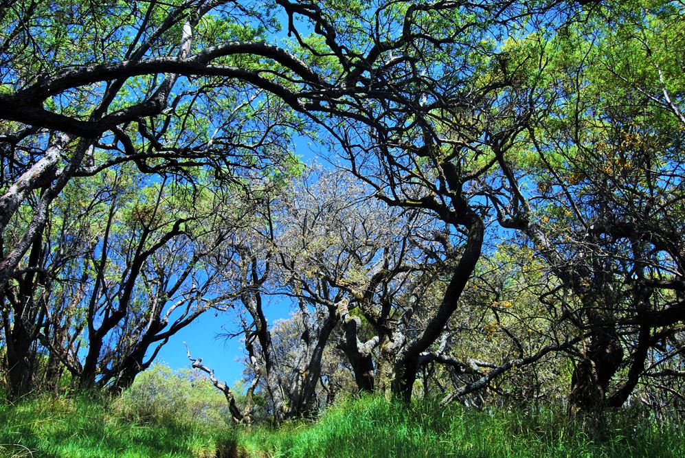 Nous reprenons notre marche et traversons une jolie zone arborée, qui sera d’ailleurs la seule de tout le parcours. La présence de toute cette verdure est étonnante, à cette altitude et si près de « la Montagne de Feu », comme on appelait ce volcan au XVIIe siècle.