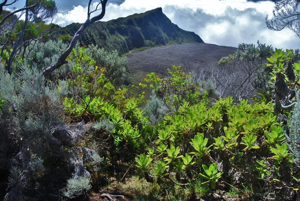 C’est pourquoi nous avons choisi une autre option, qui consiste à marcher sur le rebord de la caldeira pendant deux bonnes heures, jusqu’au lieu-dit du Nez Coupé de Sainte-Rose : on a alors une vue quasi-permanente sur le volcan, ainsi que sur l’enclos recouvert de lave qui s’étale à ses pieds. Et dès le début de la randonnée, les points de vues qui se succèdent sur le petit cratère Formica Leo nous mettent dans l’ambiance.