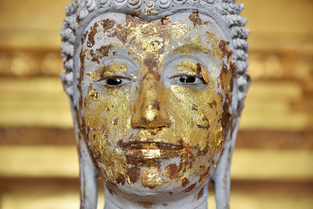 Le plus grand et le plus impressionnant d’entre eux, c’est Bouddha couché, représenté sur son lit de mort juste avant d’atteindre le Parinirvāṇa (la fin de l’existence physique pour qui a atteint l’éveil).