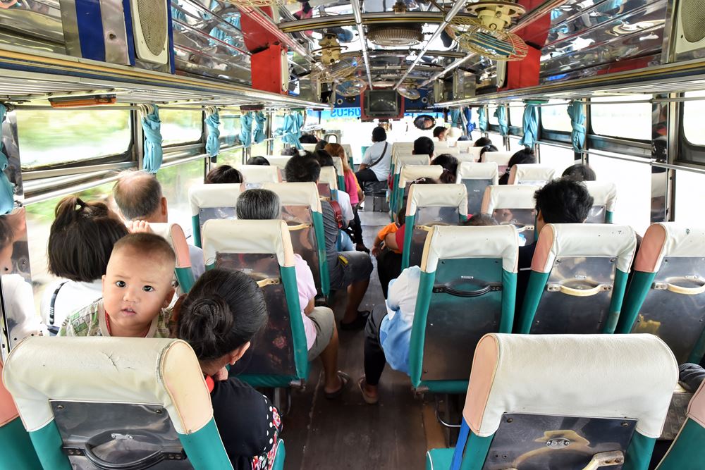 Si l’on veut éviter de prendre le train, on peut se tourner vers le bus : ils sont nombreux à partir pour Ayutthaya depuis la gare routière de Mo Chit, ainsi que des mini-vans. Le prix tourne autour d’une dizaine d’euros.