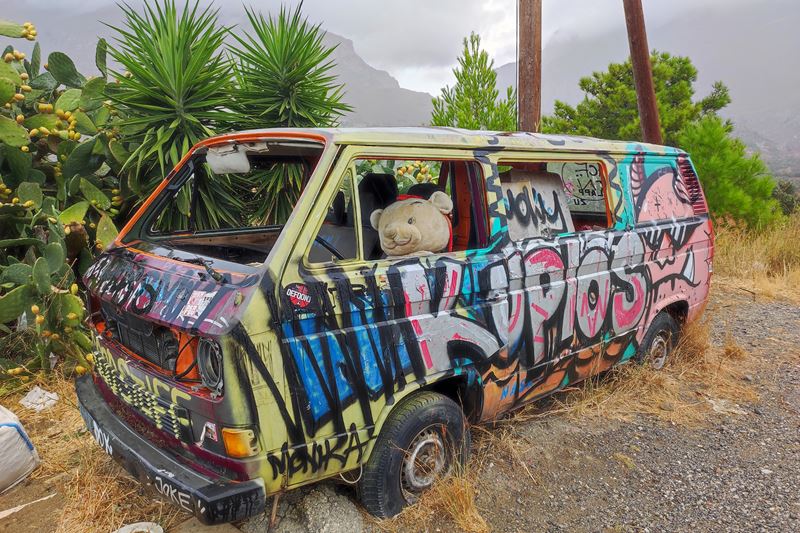 - En voiture, il y a deux solutions : la plus prisée consiste à se garer au parking de la plage de Preveli (2 euros par jour). Son principal avantage réside dans la vue plongeante et spectaculaire qu’on a sur la plage et la palmeraie. Mais on peut aussi se garer au parking de la plage Drymiskiano Ammoudi, voisine de celle de Preveli mais beaucoup moins fréquentée. On rejoint Preveli soit à la nage en quelques minutes à peine (en sécurité car l’eau est le plus souvent très calme, et en longeant les rochers donc en restant au bord), soit après une courte randonnée.