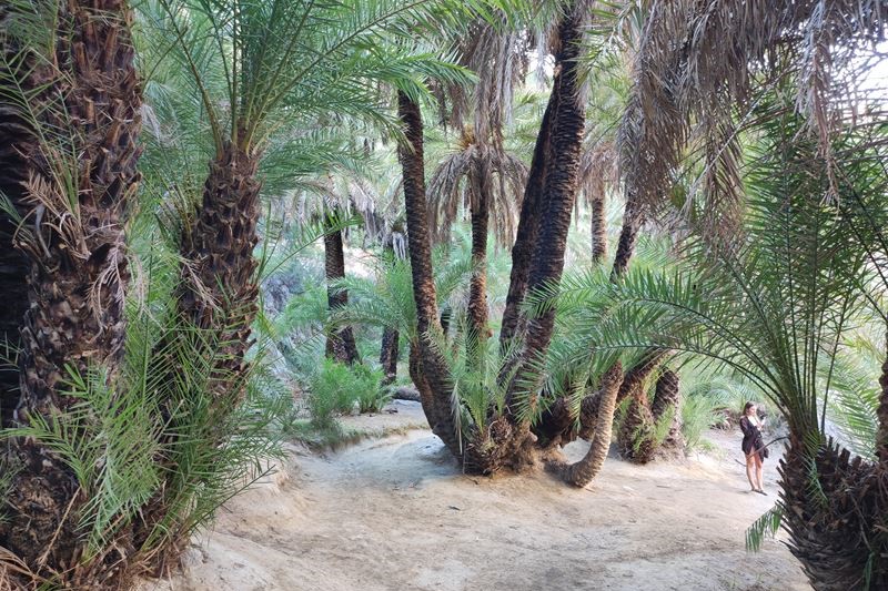 En 2010 s’est produit une catastrophe : la palmeraie a été totalement détruite par un incendie. Elle a été replantée et aujourd’hui, tout semble avoir déjà repoussé. Elle est redevenue le havre de paix qu’elle était avant l’incendie.