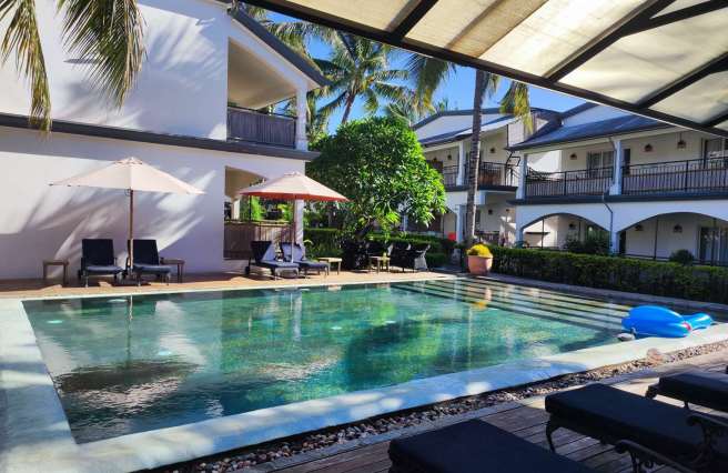 Face à la plage se trouve un excellent hôtel, le Veranda Tamarin Hotel & Spa : voir le site officiel.