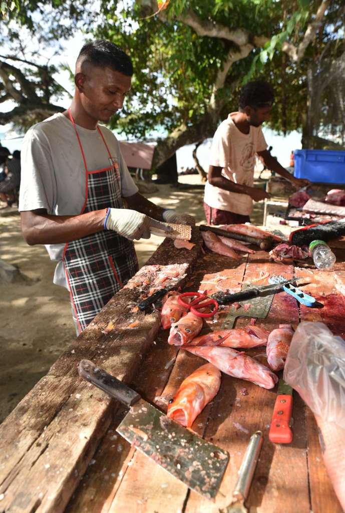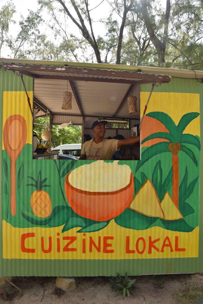 Toujours sous les filaos, on trouve de nombreux camions qui proposent de quoi manger et boire, les pieds dans l’eau. On peut donc passer la journée entière sur place, même quand on n’a strictement rien prévu pour le repas.