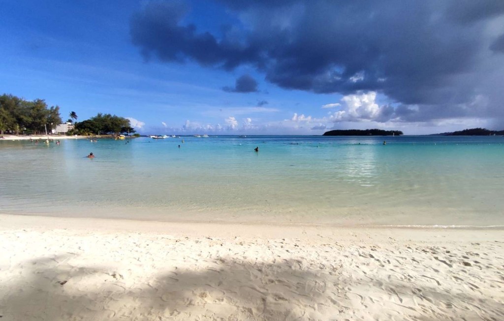 Mais d’un autre côté, cette plage donne sur un petit lagon paradisiaque, protégé par la barrière de corail un peu plus au large.