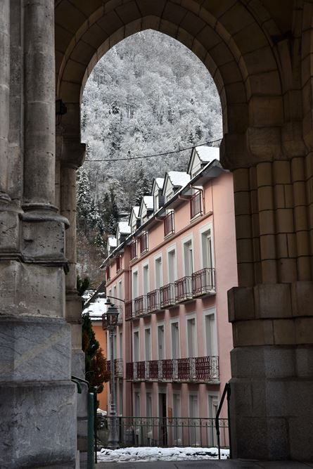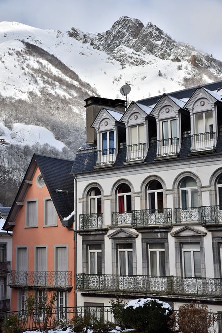 Dans le petit village pyrénéen de Cauterets, les bâtiments colorés version Belle Époque donnent un certain charme à ce village thermal cerné par les montagnes.