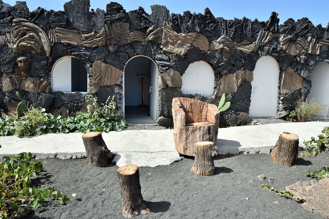 Pour les matériaux de construction et de décoration de la pension, il n’a pas fallu aller chercher bien loin : on a utilisé notamment les roches volcaniques et les morceaux de lave durcie, dont la couleur varie en fonction de la date d’éruption.