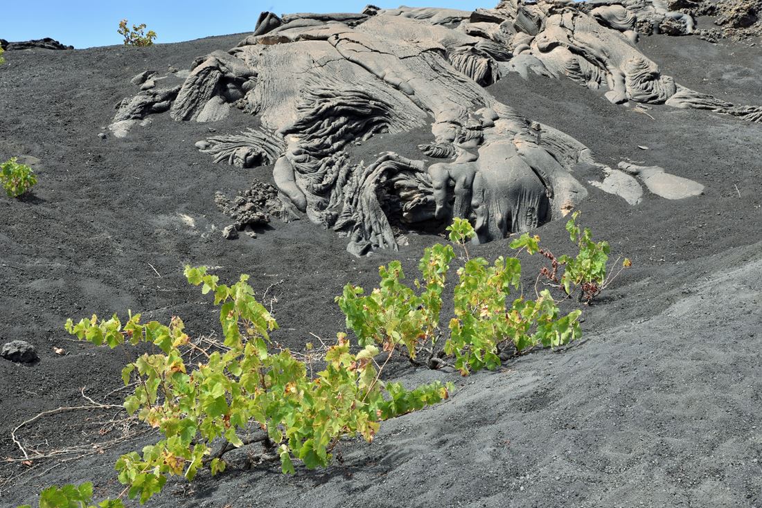 Au niveau de ces premières vignes, les anciennes coulées de lave prennent des formes tourmentées.