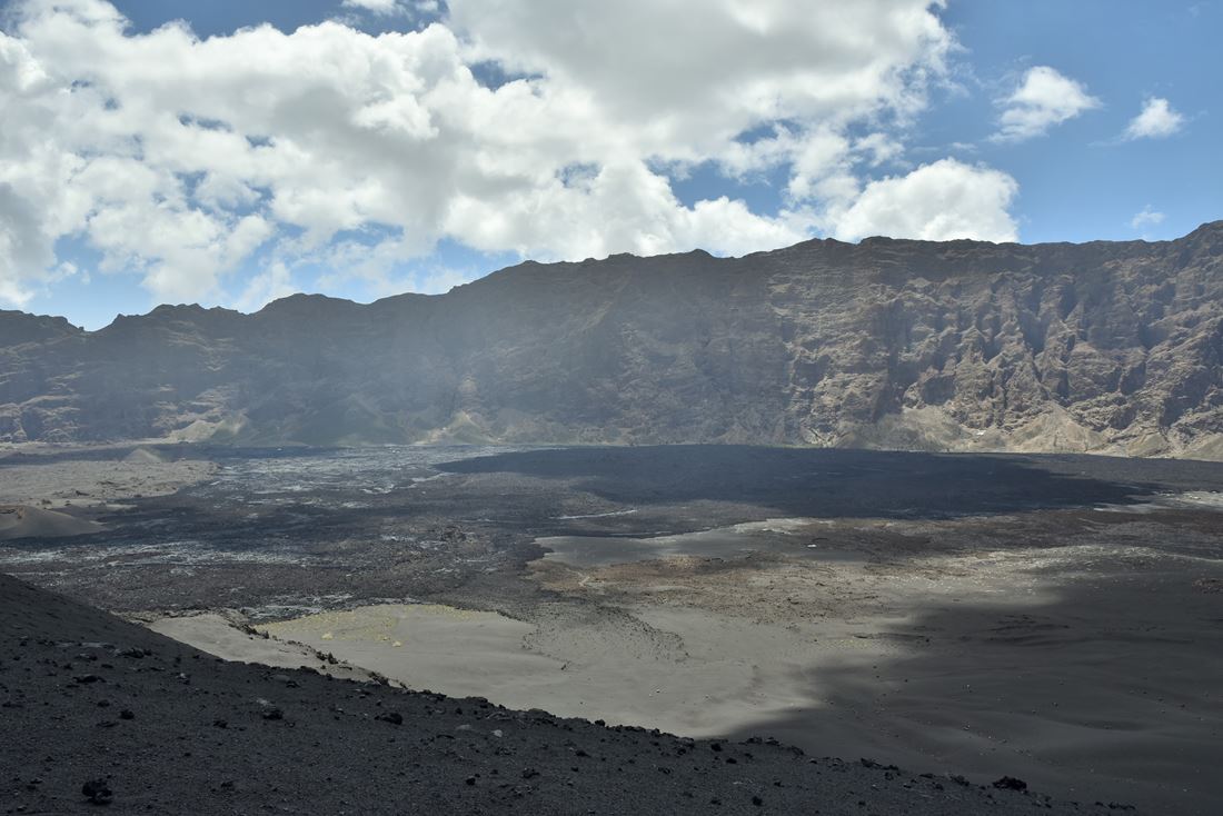 - La caldeira : elle ressemble à un vaste cratère volcanique mais n’en est pas un. Lors d’une méga-éruption il y a quelques dizaines de millénaires, la chambre magmatique située sous le volcan, en se vidant, a provoqué un effondrement gigantesque : c’est ainsi qu’est née la caldeira. Son diamètre est de neuf kilomètres. C’est au fond de cette vaste dépression circulaire que se répand la lave à chaque éruption, et c’est donc aussi là que vivent les habitants de Chã das Caldeiras. L’intérieur de la caldeira est jalonné de nombreux cratères, dont le Grand Pico et le Petit Pico.