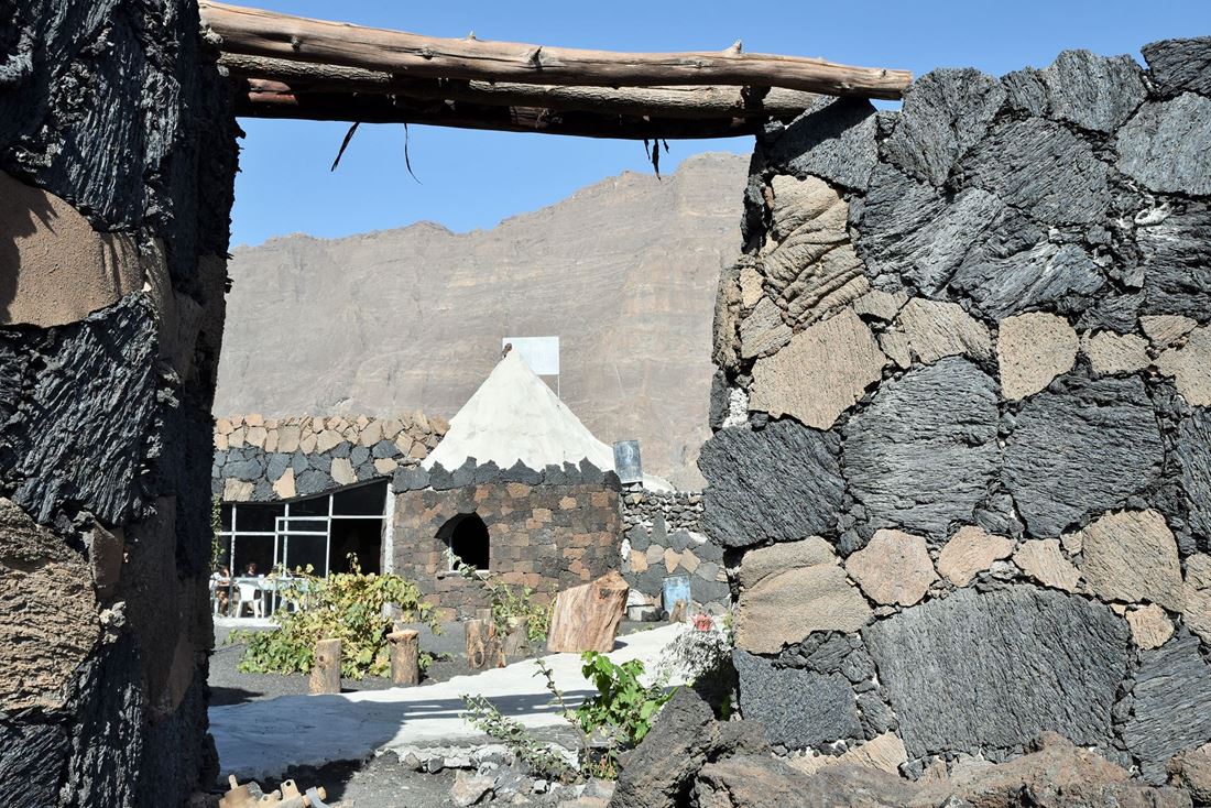 Le paysage est à la fois lunaire et hypnotisant, à tel point que nous ne voyons pas passer les trois-quarts-d’heure de piste nécessaires pour rallier le village. Le site s’appelle Chã das Caldeiras. En théorie, c’est le nom de la caldeira mais en pratique, c’est ainsi qu’on dénomme le village et plus précisément les hameaux construits (ou plutôt reconstruits) au fond de la caldeira.