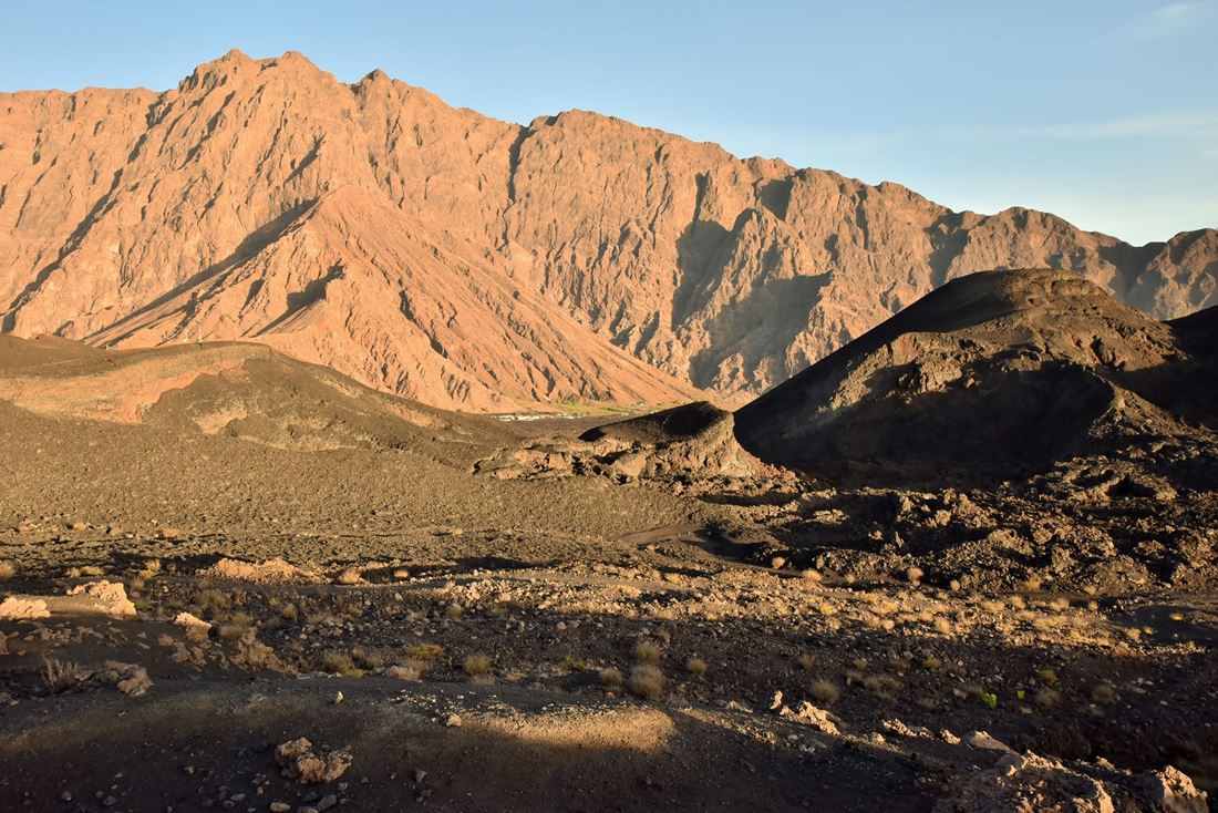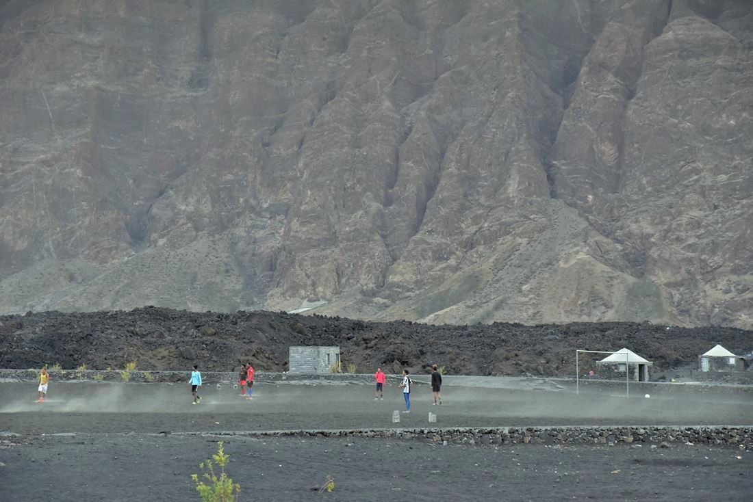 Notre premier soir se profile dans ce lieu incroyable. Ce n’est pas encore tout à fait l’heure d’aller se coucher pour le soleil, néanmoins en descendant, il plonge rapidement tout l’intérieur de la caldeira à l’ombre de ses hauts remparts. Quelques habitants profitent des dernières lueurs du jour pour jouer au foot dans la poussière volcanique, juste à côté de la dernière coulée de lave.