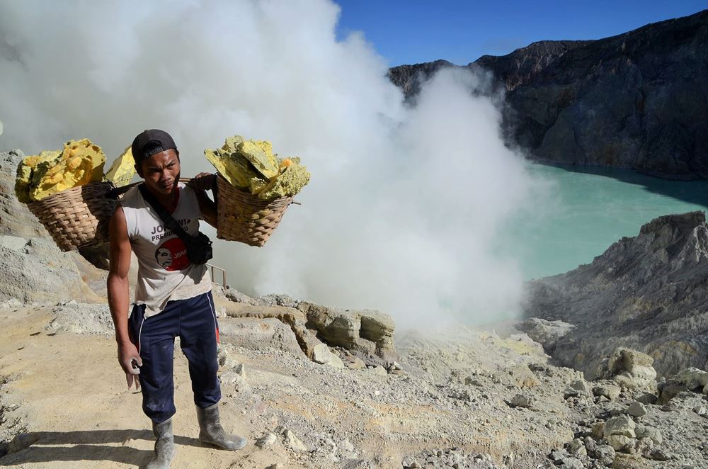 • Photos des mineurs – Les « photos volées », ici encore plus qu’ailleurs, sont à proscrire. Les mineurs sont souvent d’accord pour se faire saisir le portrait si on s’adresse à eux gentiment. Aucun d’entre eux ne m’a jamais demandé quoi que ce soit en échange, mais j’ai toujours donné un billet, c’est la pratique dans ce volcan. Ici ou ailleurs, je demande toujours l’autorisation de prendre les gens en photo mais je ne donne jamais rien en échange. Là, au vu de leurs conditions de travail, je n’ai pas hésité une seconde.