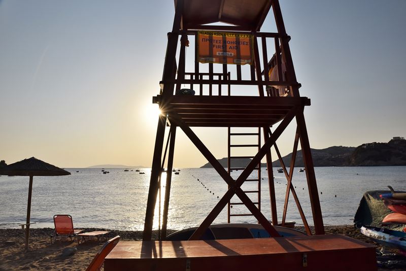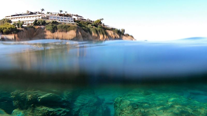 La plage principale est aménagée : transats, parasols, snacks, et possibilité de pratiquer les sports nautiques ainsi que la plongée sous-marine.