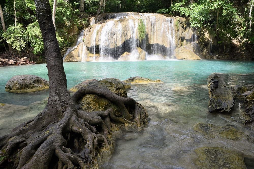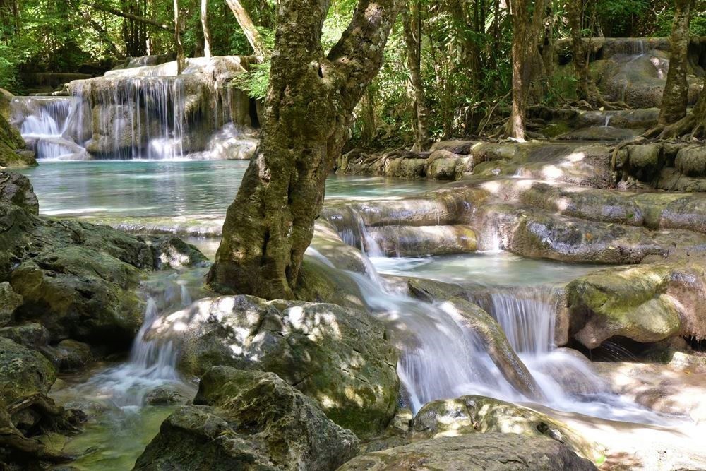 Les chutes d’Erawan dégoulinent sur sept niveaux. Il est possible (et divin) de se baigner dans chaque piscine naturelle entre deux chutes.