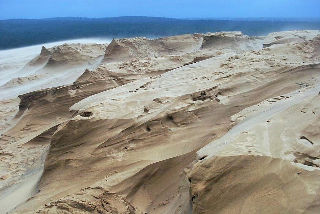 Au gré des marées et surtout des vents, la Dune se déplace en permanence d’ouest en est, à la vitesse non négligeable de un à cinq mètres par an !