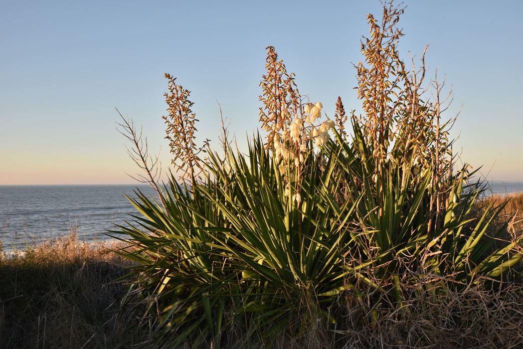 Les quatre images ci-dessous, prises le même soir, représentent un seul et même yucca (cette plante vivace aux feuilles en forme d’épées, qui est omniprésente dans les dunes de la région).