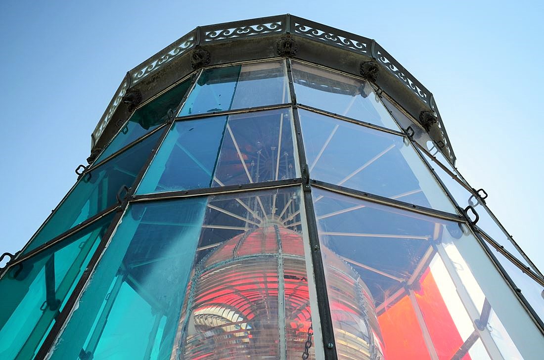 Quand on finit par venir à bout de cette longue succession d’escaliers, on aperçoit tout d’abord le centre névralgique du roi des phares, juste au-dessus de notre tête.