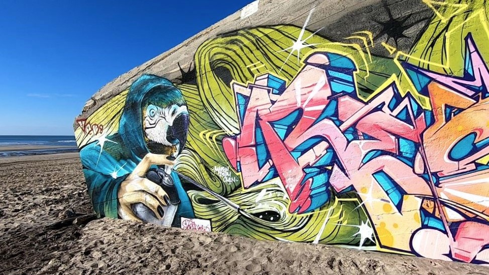 Les cinq images ci-dessous représentent la même façade du même blockhaus, sur lequel les œuvres se succèdent au fil des années. Elles ont toutes été prises entre 2018 et 2020.