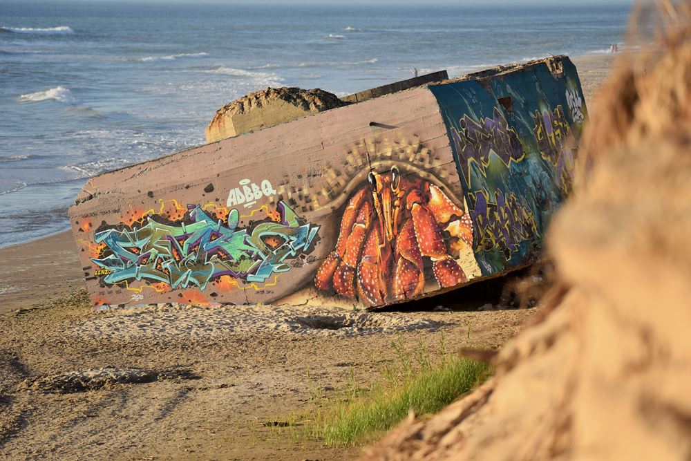 Et il faut bien reconnaître que seules les forces de la nature semblent être en mesure d’en venir à bout : d’abord avec le recul des dunes, qui fait tomber peu à peu les bunkers sur les plages, puis avec les coups de boutoir de l’océan pour terminer la besogne.
