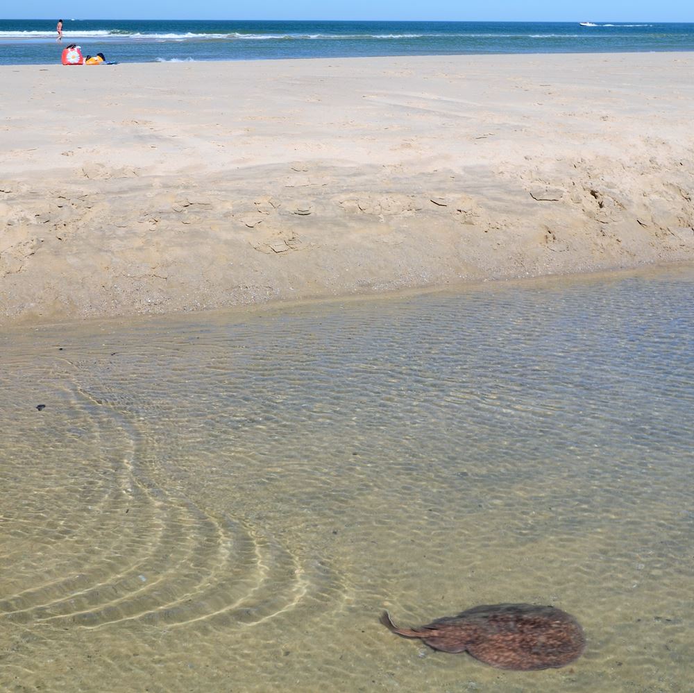 Rare : une torpille (ou raie électrique) s’est fait piéger par la marée basse dans une baïne.