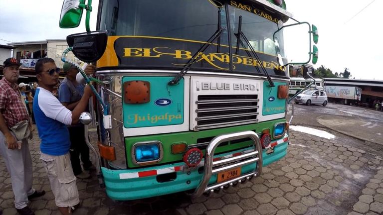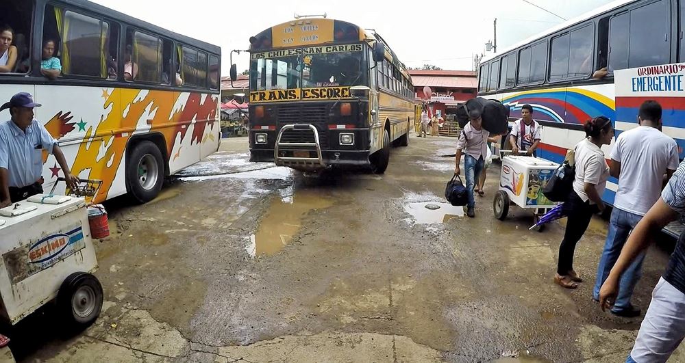 Pour nous, le premier contact avec les mythiques bus latino-américains commence dans une petite gare routière aux abords de Managua, la capitale. Là, nous montons dans un bus multicolore où nous nous préparons à passer six heures en direction de San Carlos.