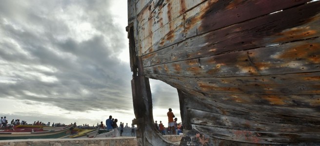 Les gamins qui viennent de sortir de l’eau reviennent admirer la bête, en ne trempant toutefois pas le moindre orteil cette fois !